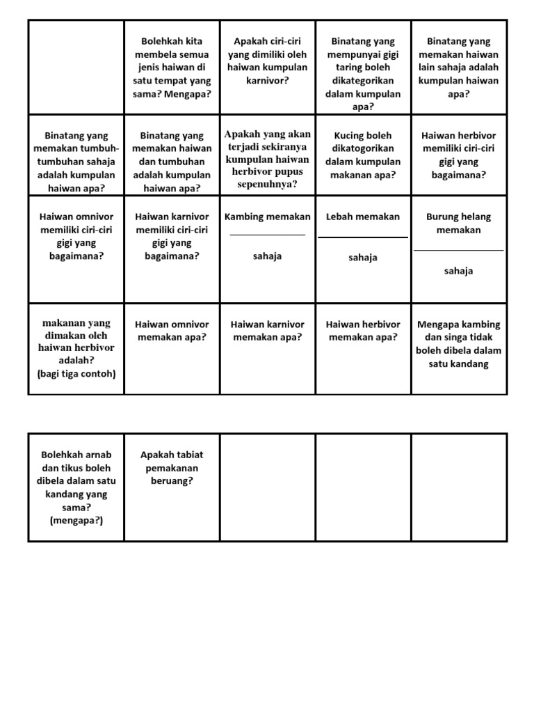 Play this game to review Science. Kita boleh mengelas haiwan dengan menggunakan carta pengelasan. Pengelasan haiwan mengikut tabiat pemakanannya ialah.