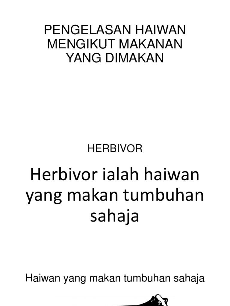 2Lekatkan gambar haiwan di atas kad manila. Mengelaskan haiwan mengikut 4 makanan yang dimakan iaitu makan tumbuhan sahaja makan haiwan sahaja atau makan haiwan dan tumbuhan. Murid dapat menerangkan beberapa proses yang.