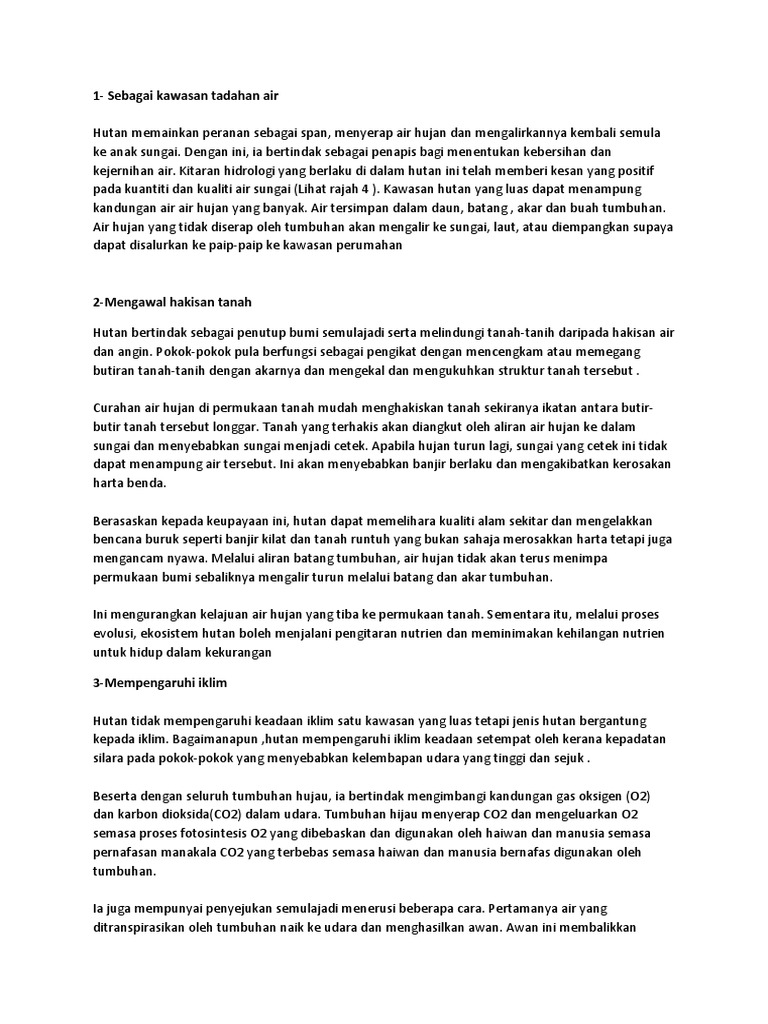 Apa itu floradan apa pula faunaflora ialah keseluruhan tumbuh-tumbuhan yang terdapat di sesuatu kawasan pada satu-satu masa manakala fauna mewakili semua haiwan yang hidup di suatu kawasan tertentujadi kepupusan flora dan fauna adalah kemusnahan dan kepupusan semua tumbuhan dan haiwan. Mendidik masyarakat tentang melindungi haiwan dan tumbuhan. Air yang tersejat ini membentuk awan dan turun semula ke bumi sebagai hujan.
