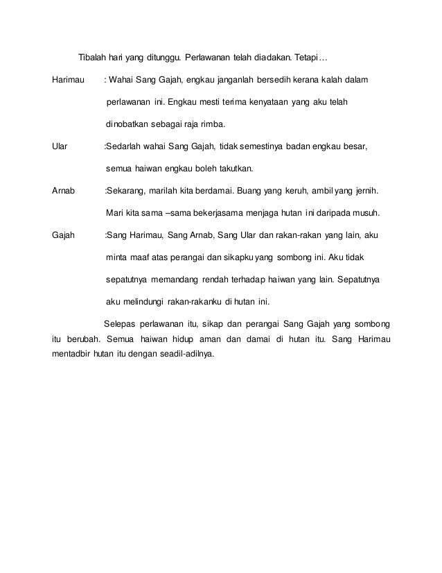 May 14 2017 Penyampaian cerita sering diiringi dengan alat muzik tradisional seperti batil rebab dan lain-lain. Sep 25 2014 Dialog bahasa inggris orang terbaru dhono wareh mirip blog berisikan contoh kata ucapan kata bijak mutiara gambar animasi gerak cerpen contoh kisi kisi soal ujian naskah drama cara membuat pengertian dhono wareh home belajar bahasa inggris dialog bahasa inggris orang bahasa inggris nahh berikut ini adalah dialog bahasa inggris untuk orang teks naskah drama. Aug 05 2012 Kadang fabel memasukkan karakter minoritas berupa manusia.