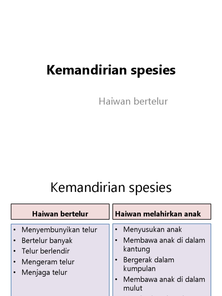 Bertelur melahirkan anak haiwan memastikan kemandirian spesiesnya dengan cara menjaga. Sains Tahun 5 Unit 2. Kemandirian spesies hidupan 1.